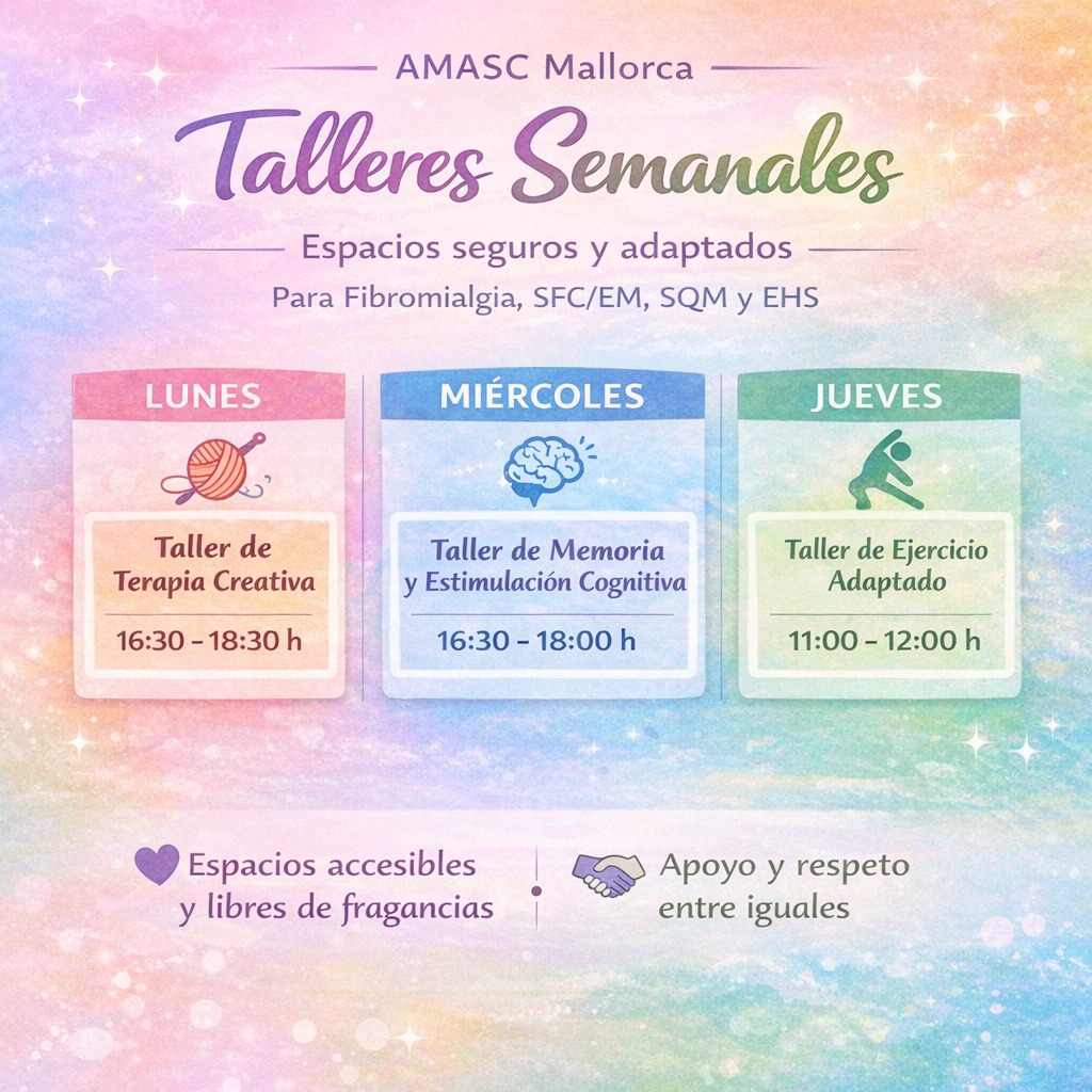AMASC #Mallorca es una asociación sin ánimo de lucro que representa y defiende los derechos de las personas con: #Fibromialgia (FM), #EncefalomielitisMiálgica / #SíndromedeFatigaCrónica (EM/SFC), #SensibilidadQuímicaMúltiple (SQM), #Electrohipersensibilidad (EHS).